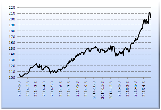 30日电池股价指数收207.38,环比下跌0.41%。今日指数高开低走,震荡下行。南都电源2015年一季度公司实现营业收入8.79亿元,同比增加9.82%;实现归属于上市公司股东的净利润为2,751.12万元,同比下降40.64%,折合每股收益0.05元。一季度净利润大幅下降主要是由于上年同期会计政策变更致使净利润增加约2,000万元,本期无该因素影响,后备电源和储能业务一季度均实现收入利润双增长。