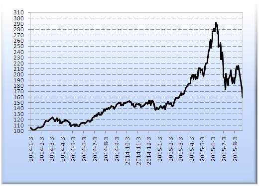 26日电池股价指数收159.33,环比下跌2.32%。今日指数小幅低开,震荡下行。8月25日,鹏辉能源(30438)发布2015年上半年业绩报告,报告期内实现营收3.4亿元,同比增长13.7%,归属于上市公司股东的净利润3075万元,同比增长25.9%。