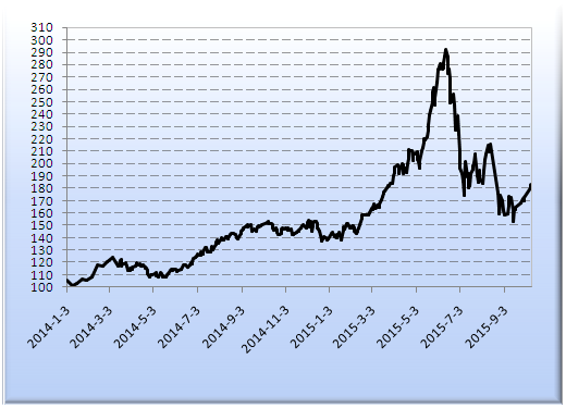 9日电池股价指数收182.85,环比上涨1.55%。今日指数高开低走,震荡上行。多氟多(002407)10月8日晚间发布业绩修正公告,公司将2015年1-9月归属于上市公司股东的净利润由此前预计的“1800万元至2200万元”上调至“2800万元至3200万元”,上年同期为亏损327.10万元。
