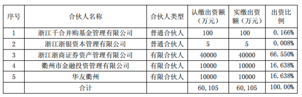 华海新能源产业基金总规模为60105万元,其中,子公司华友衢州出资10000万元,为有限合伙人。