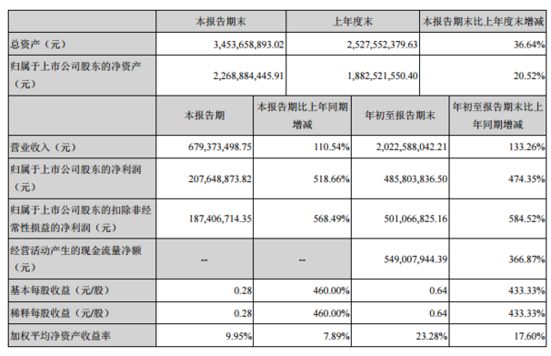 赣锋锂业(002460)24日晚披露三季报,公司前三季度实现营业收入20.23亿元,同比增长133.26%;实现净利润4.86亿元,同比增长474.35%,基本每股收益0.64元。