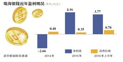 查阅格力电器此前发布的重组方案可知,珠海银隆2014年、2015年、2016年上半年度净利润分别为-26577.61万元、41602.08万元及37727.68万元。然而,在这背后,是公司对政府补助的较大依赖,上述报告期内政府补助分别高达4789.36万元、3513.17万元和7764.09万元。