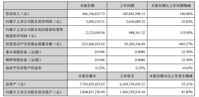 猛狮科技近日发布一季度财报,报告期内公司营业收达4.46亿,相比去年同期的1.85亿同比增长140.06%。