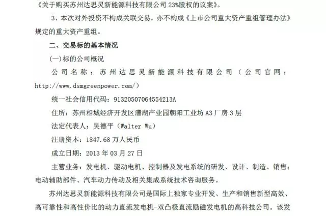 7月11日,京威股份发布公告称,根据公司新能源汽车发展战略的需要,公司以1.15亿元人民币购买苏州达思灵新能源科技有限公司23%的股权。