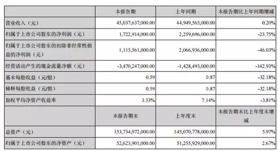 8月28日晚间,比亚迪(002594)披露2017半年报。公司2017年上半年实现营业收入45,037,637,000.00元,同比增长0.20%;实现归属于上市公司股东的净利润1,722,914,000.00元,同比下降23.75%。