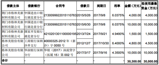 格林美表示,本次募集3亿资金到账后,拟用于偿还下表所列范围内的银行贷款: