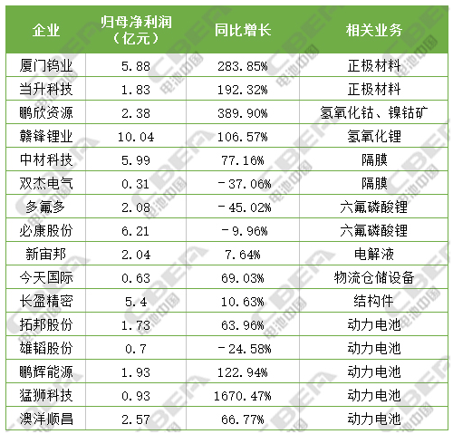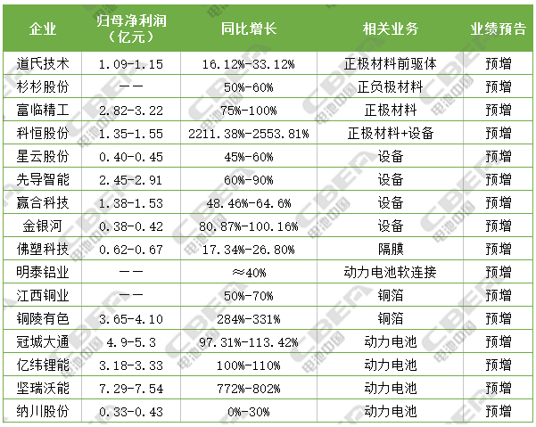 图2为16家锂电相关企业前三季度业绩预告