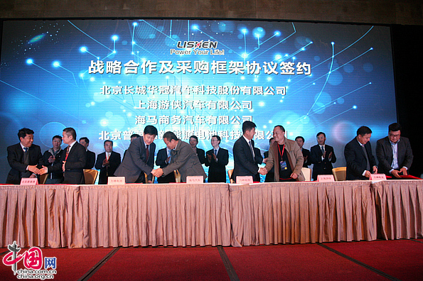力神公司2017年新技术新产品发布暨(六期)新工厂落成典礼现场,力神公司与16家国内外整车企业签署战略合作及批量供货协议书
