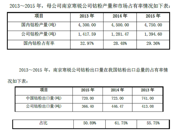 近年来,国内钴粉产量逐年增长,南京寒锐公司的钴粉产量市场占有率接近国内市场的三分之一,具备良好的市场占有率。