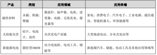 横店东磁是一家拥有磁性材料、太阳能光伏、新能源电池等多个产业群的高新技术民营企业,其主要产品及其用途如下。