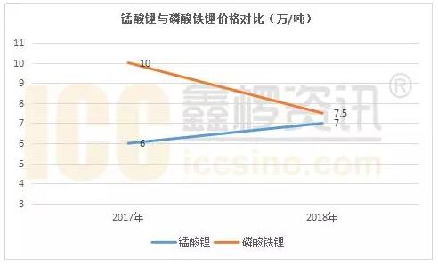 2017年以来,受产能过剩影响,磷酸铁锂价格持续下滑,截止到2018年4月,市场主流成交价已至7.5万/吨,个别厂家出货至储能领域的产品低至7万/吨;与之形成鲜明对比的,锰酸锂市场却产销两旺——根据鑫椤资讯统计,2017年国内锰酸锂产量达3.5万吨,同比增长34%,高端动力型产品也从6万/吨一路上涨至7万/吨。