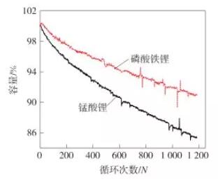 循环性能方面一直是磷酸铁锂的强项,锰酸锂在这一点上无法抗衡。在常湿和高温情况下,磷酸铁锂电池容量随循环周期退化速度明显低于锰酸锂电池,在高温情况下,两种电池的衰退明显加快,从数据上判断,磷酸铁锂电池的使用寿命为锰酸锂电池2-3倍。