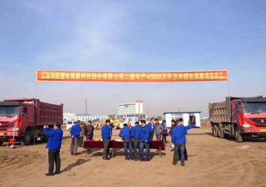 10月20日,辽源鸿图锂电隔膜科技股份有限公司二期年产4500万平方米的锂电隔膜项目正式开工。公司主要产品有锌锰电池隔膜、高品质锂离子电池隔膜。其中锌锰电池隔膜产品出口到南非、日本、韩国等国家和地区,是日本松下公司10年优秀供应商,锂离子电池隔膜已成为天津力神优秀供应商、主供应商,并且产品通过了三星、LG、住友、帝人等国内外知名企业认证。