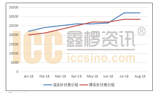 图:2018年1-8月国内针状焦价格走势