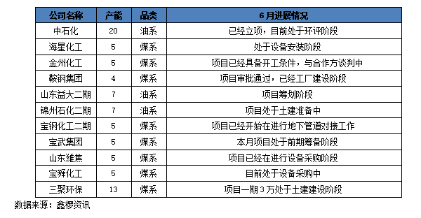 表:新增针状焦项目进展情况