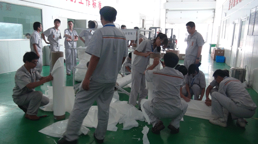 2014年7月11日河北金力新能源中层管理人员、部长以上管理人员、品保人员等在副总经理饶俊杰、隔膜事业部副总徐锋的带领下,在隔膜事业部进行B品隔膜的报废处理。