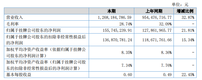 贝特瑞近日公布半年报,报告显示,公司2017年上半年营业收12.68亿,同比增长32.87%,归属于挂牌公司股东的净1.55亿,同比增长21.81%。